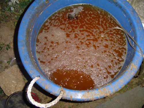 Compost tea brewing is fun! It is both a science and an art. No two tea brews are exactly the same. We use our teas as soil and foliar applications on literally everything we grow in the garden and on our lawn. The simplest recipe for aerated compost tea is just mature compost, plus any non-chlorinated water source (or rain water or pond water), plus any sugar source (i.e. molasses products are the most common among aerated compost tea brewers).